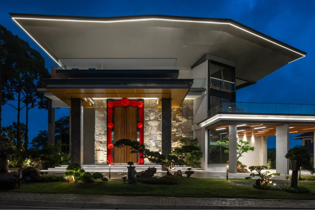 Quick facts This distinctive residence features multiple design elements that highlight the use of aluminum coping, elegantly accentuating the roof edges for a refined architectural finish. Products used in the project Aluminium Roof Coping Sliding Door Top Hung Window